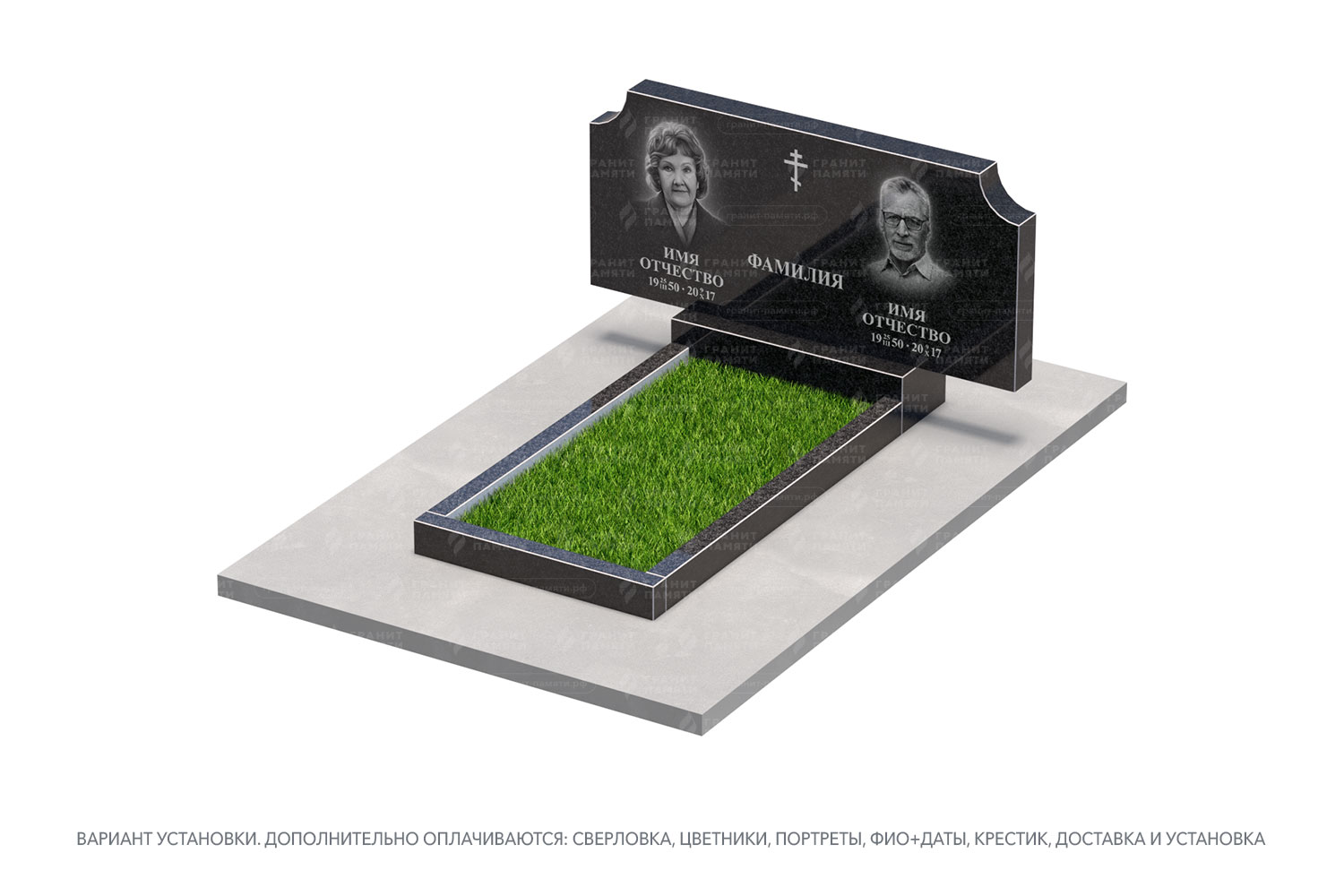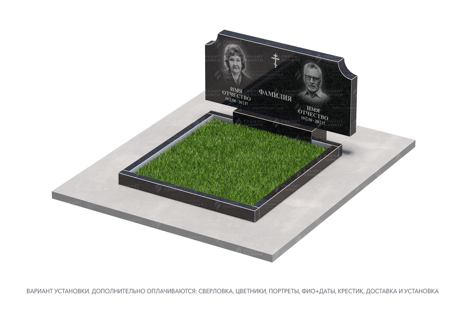 цветник, сверловка, портрет, ФИО+даты, крестик, доставка, установка.