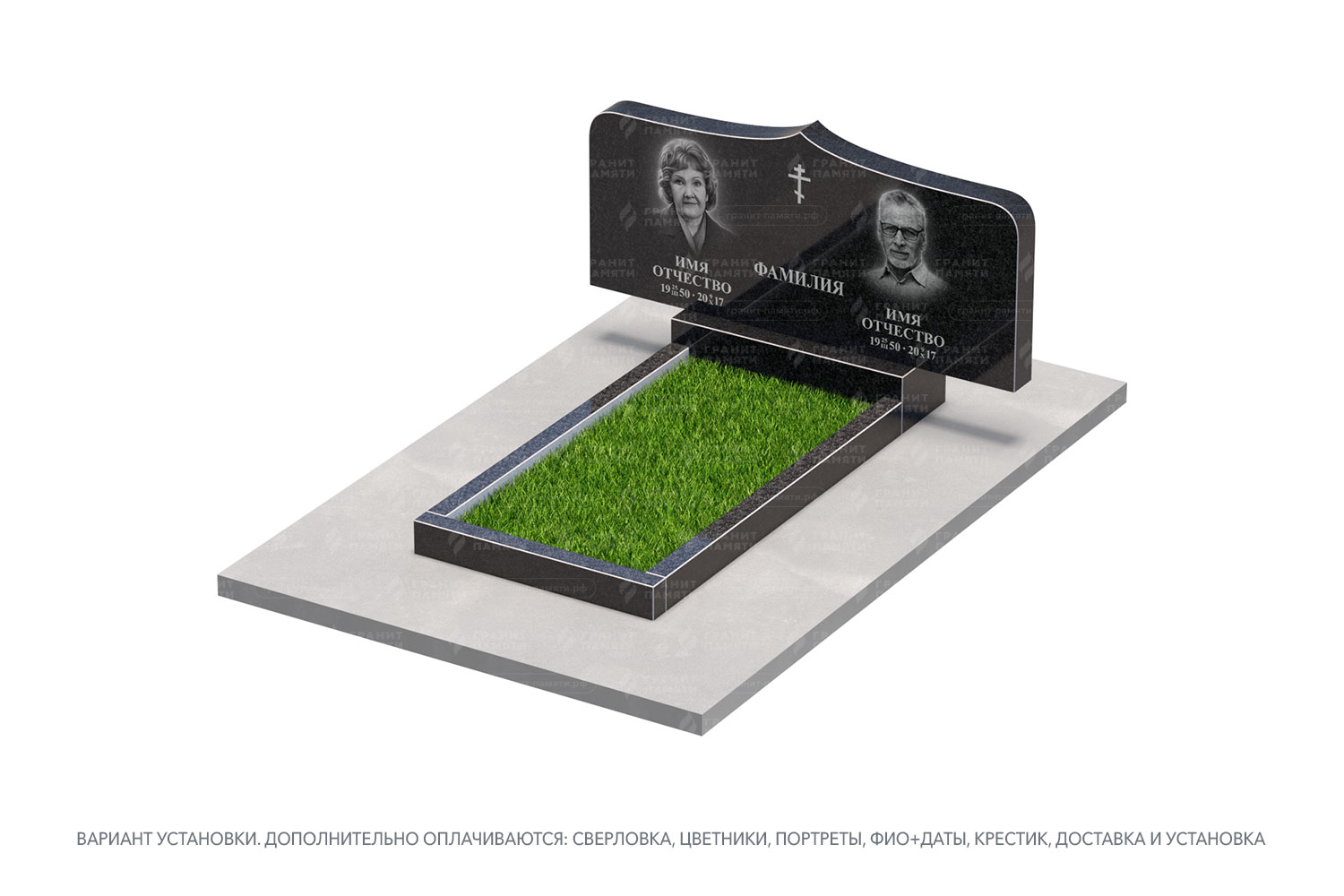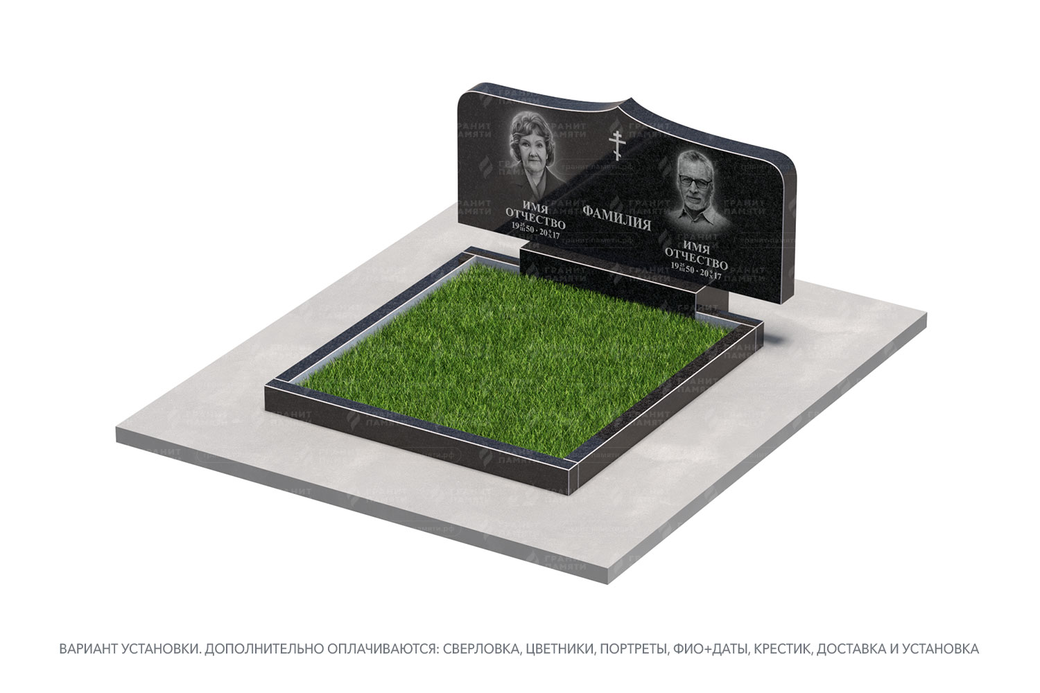цветник, сверловка, портрет, ФИО+даты, крестик, доставка, установка.