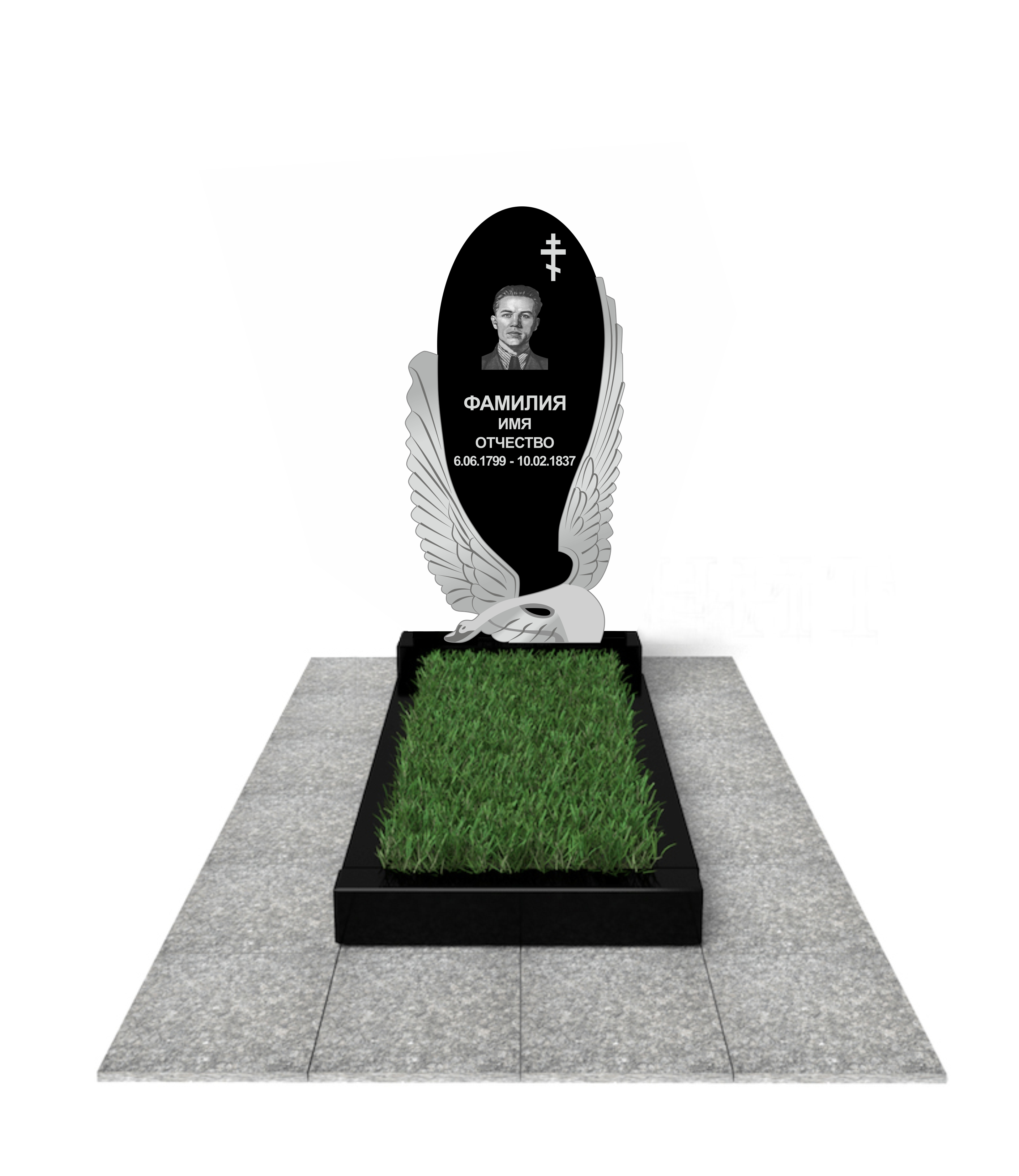 цветник, сверловка, портрет, ФИО+даты, крестик, доставка, установка.
