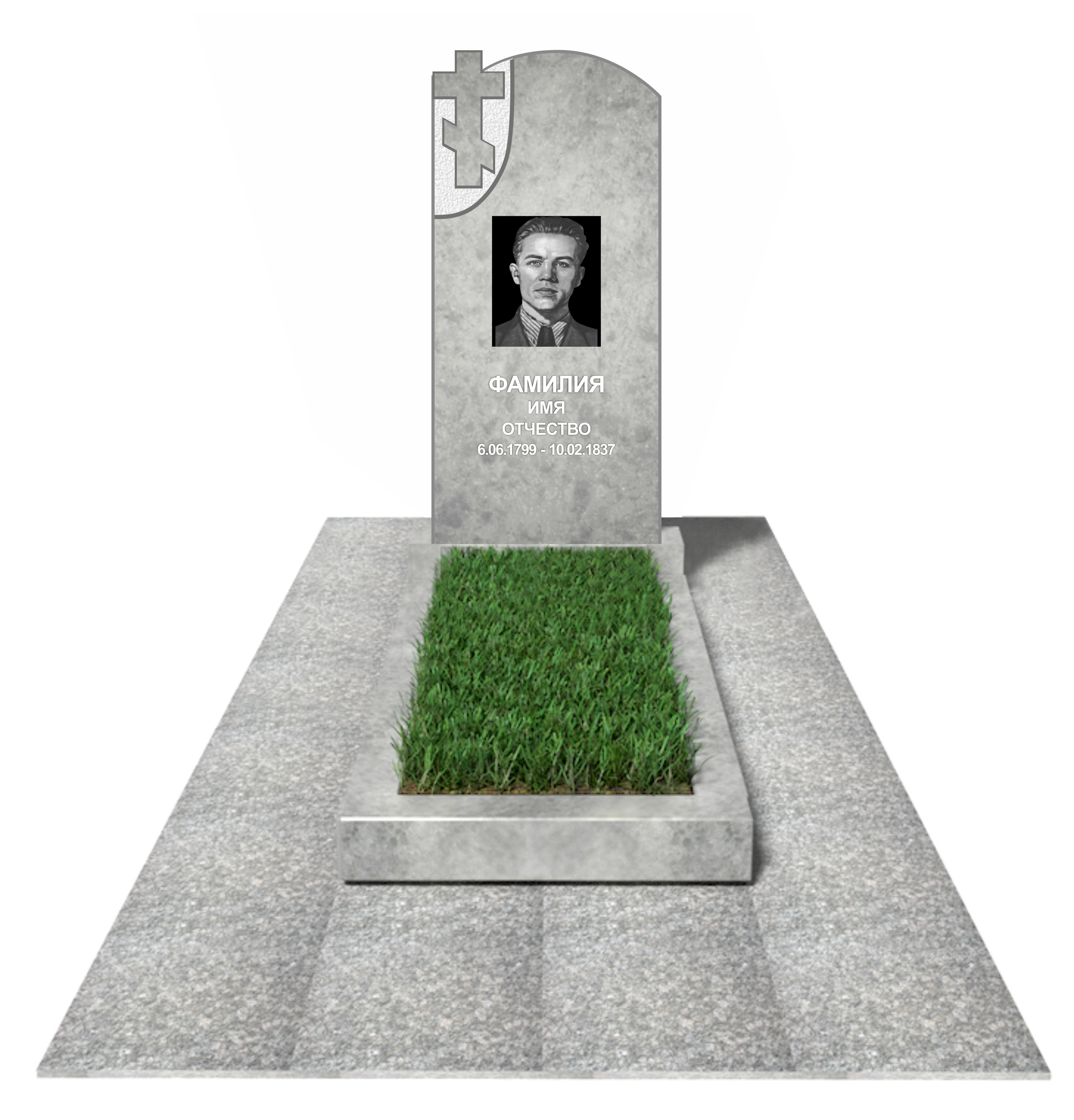цветник, сверловка, портрет, ФИО+даты, крестик, доставка, установка.